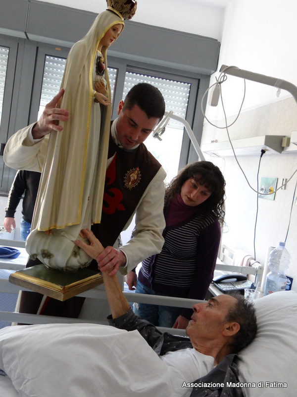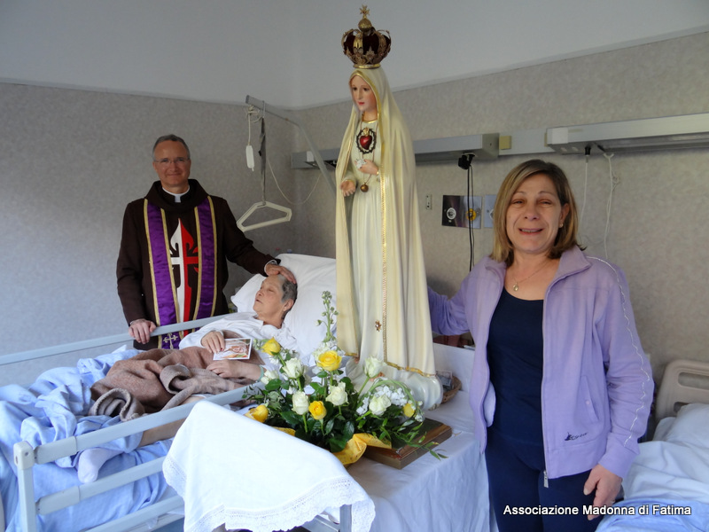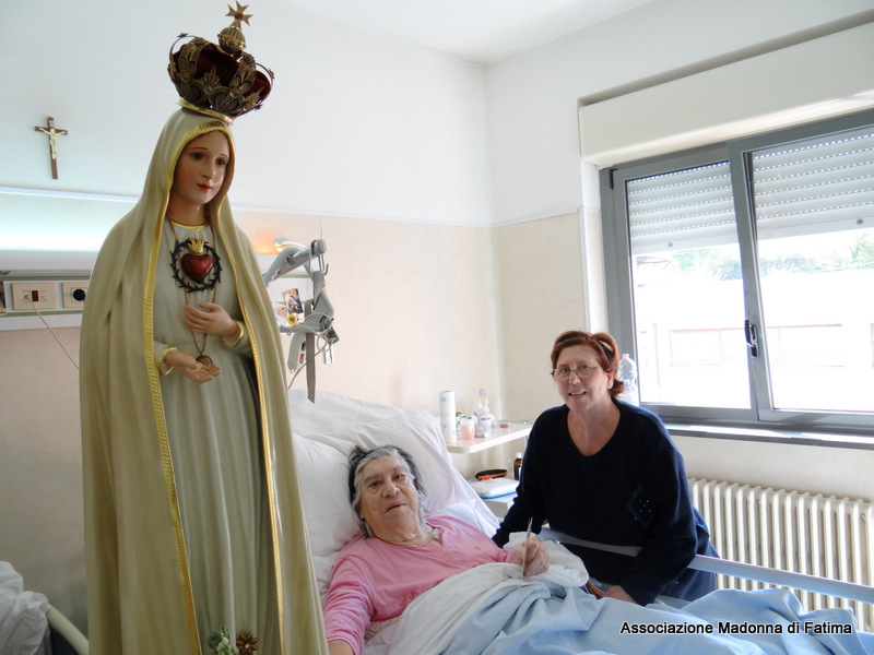 “Una signora in avanti con gli anni, ha dichiarato di sentirsi sola ed abbandonata non ricevendo mai visite da nessuno, ma nel vedere entrare nella sua stanza la Madonnina del Cuore Immacolato di Maria, la gioia è stata così grande da elevare la preghiera di essere pronta a partire per il Cielo in così bella letizia”
