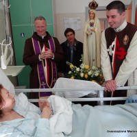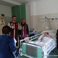 La visita della Statua della Madonna Pellegrina è stata molto gradita dai pazienti ricoverati nei diversi reparti della Casa di Cura, infatti l’ingresso della statua nelle loro stanze è stato accolto da entusiastico stupore, autentica gioia trapelava dalla testimonianza delle loro commuoventi parole, lasciate agli Araldi come gentile ricordo: