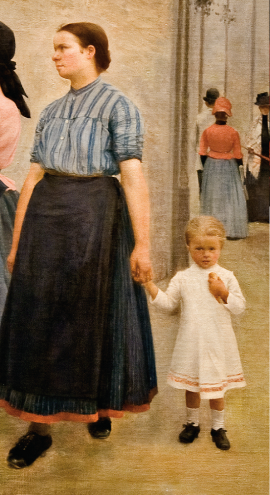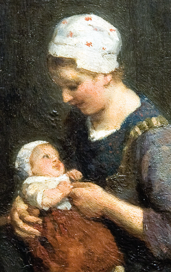La madre, timorosa per i pericoli a cui si espone il fragile figlio, lo prende in braccio