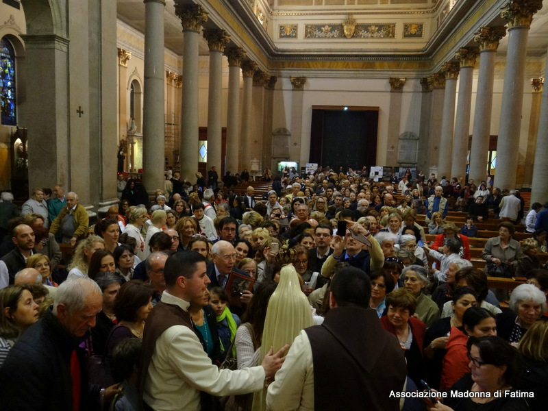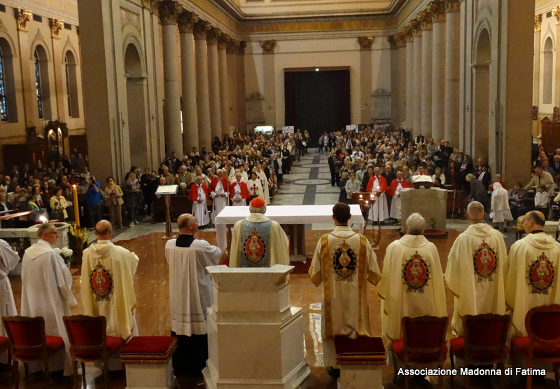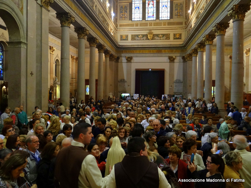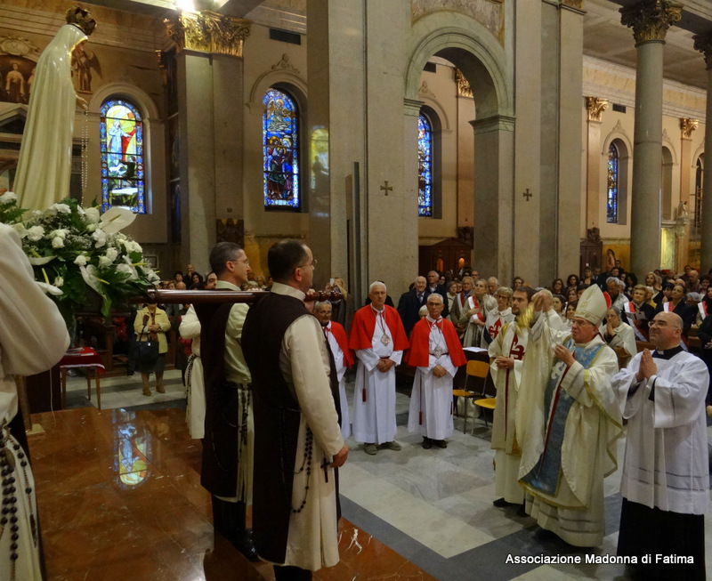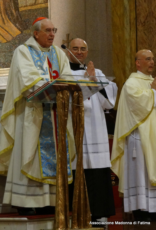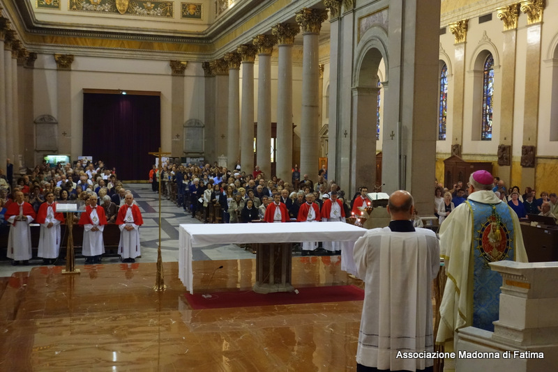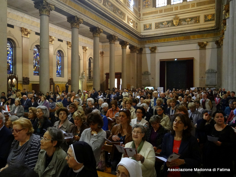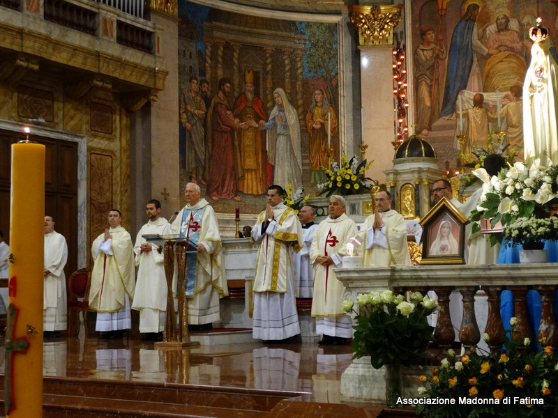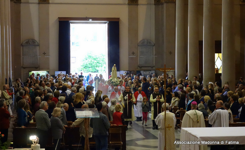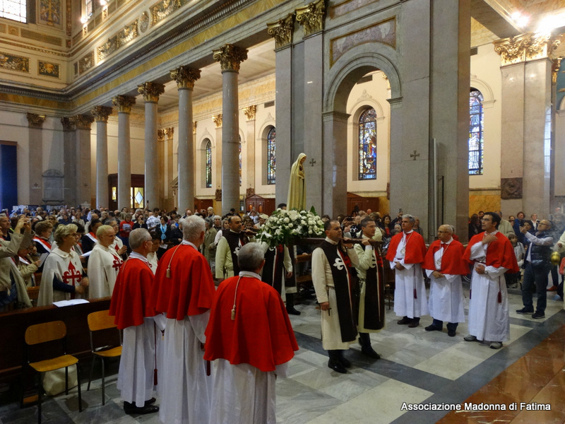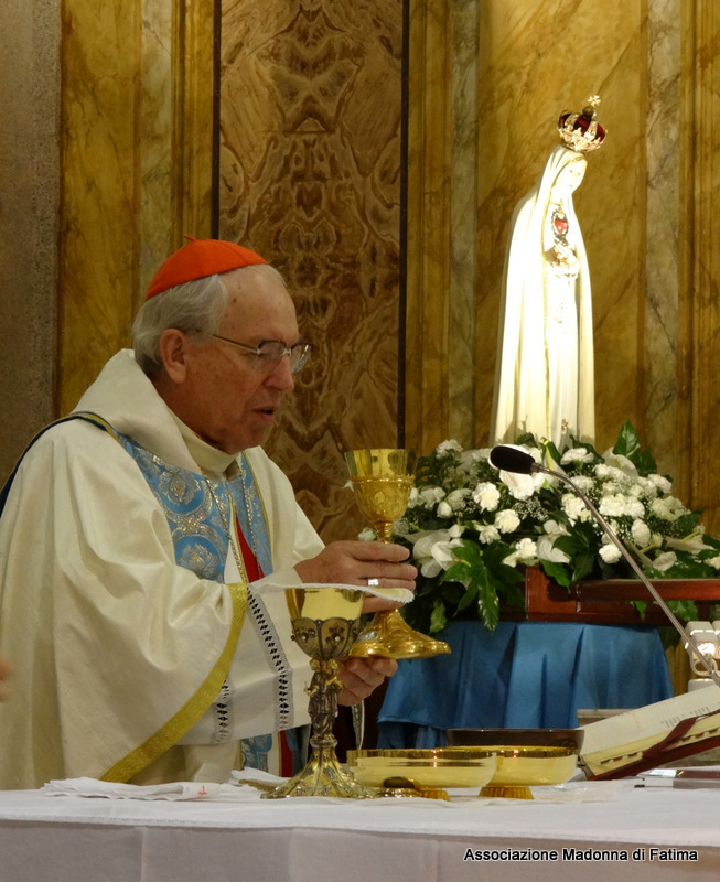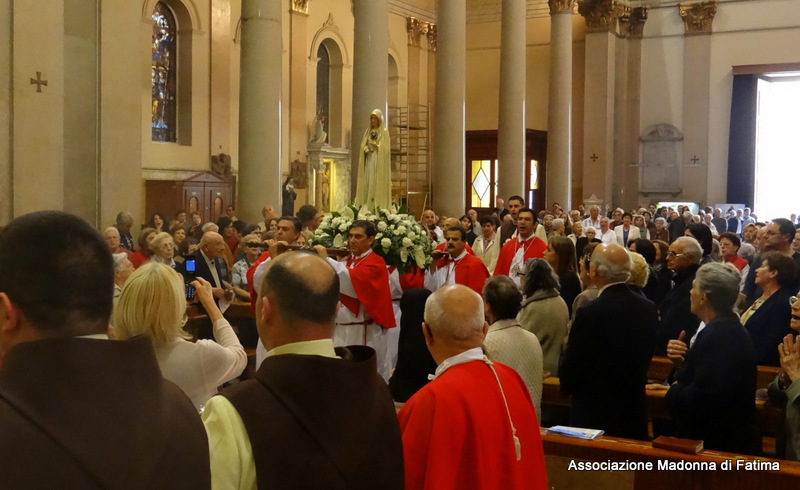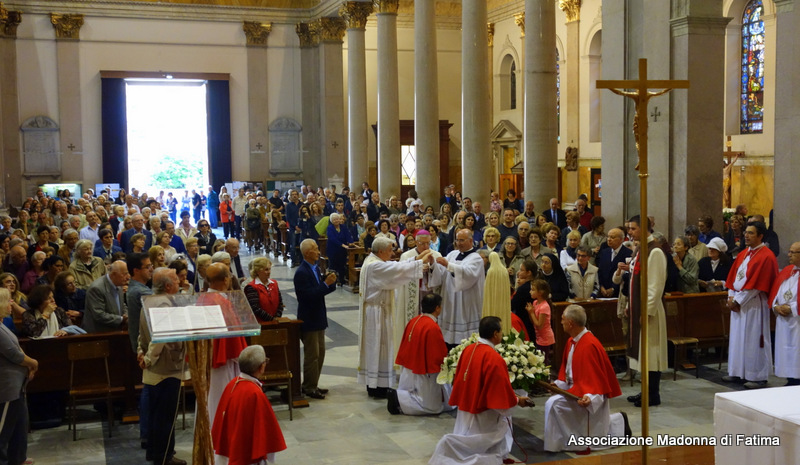 In questo giorno di festa, ovvero, il 13 maggio, tanti sono accorsi  e  per utilizzare le stesse parole di S. Em.za Card. Giovanni Battista Re, “…pur essendo un giorno feriale siete venuti numerosi, questa è una dimostrazione di come la Madre di Dio attira…”  Egli ha incoronato la statua pellegrina della Madonna di Fatima ed ha presieduto la Solenne Concelebrazione Eucaristica per i festeggiamenti del 97° anniversario delle apparizione a Fatima; al termine ha realizzato l’ atto di consacrazione al Cuore Immacolato di Maria  per la Parrocchia ed i presenti.