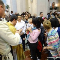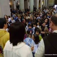 Un momento toccante è stato assistere alla consacrazione di circa 150 bambini; come segno,  gli Araldi del Vangelo hanno consegnato a ciascuno di essi una medaglia miracolosa.