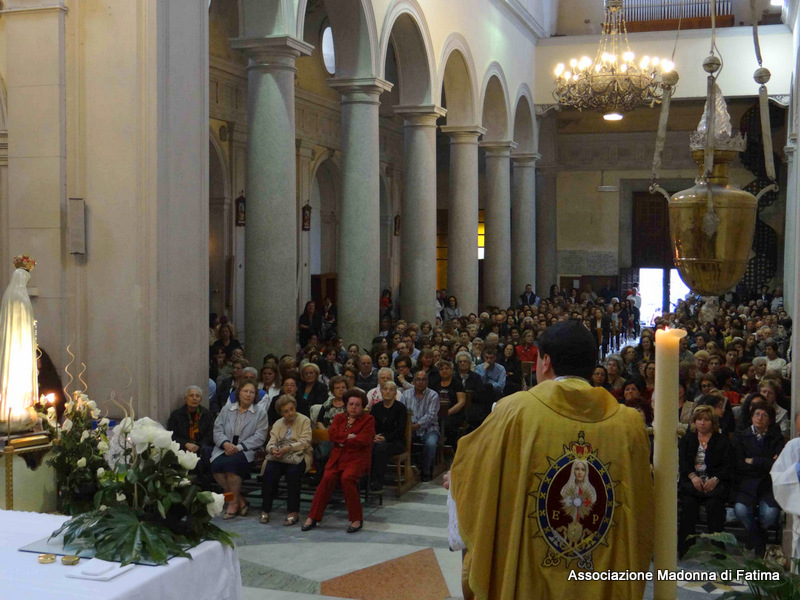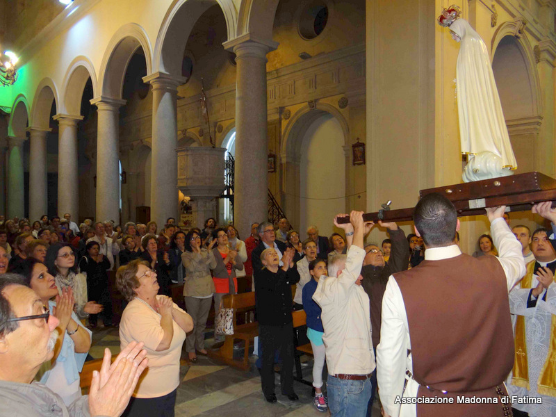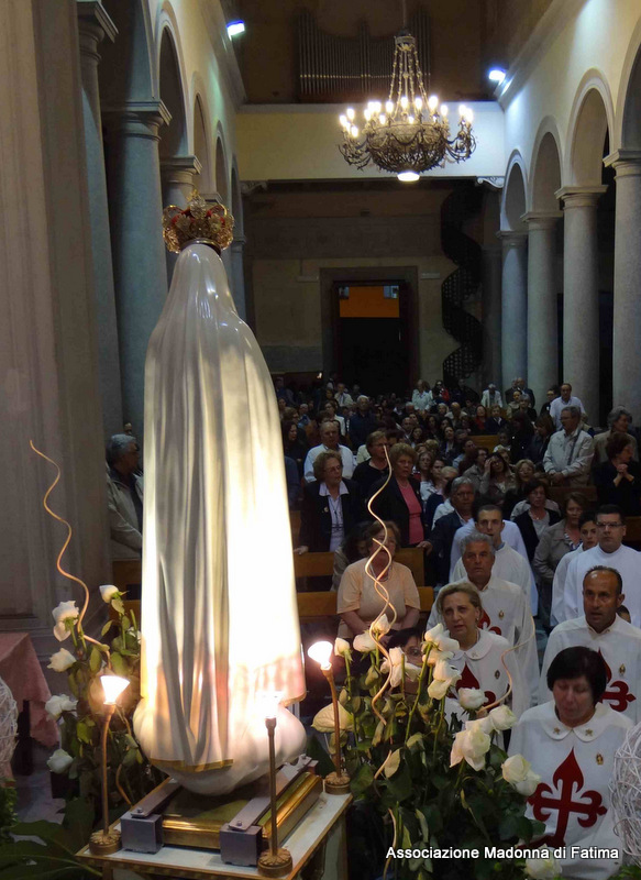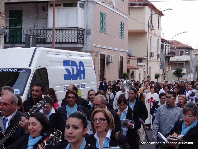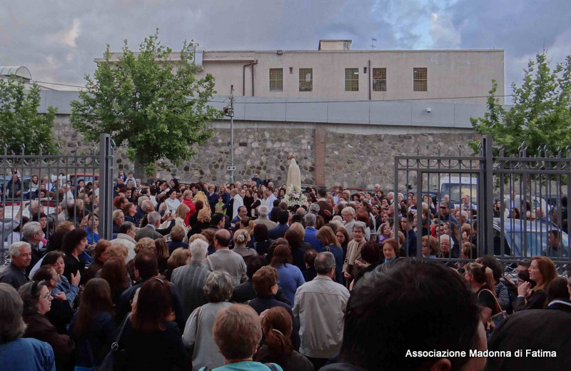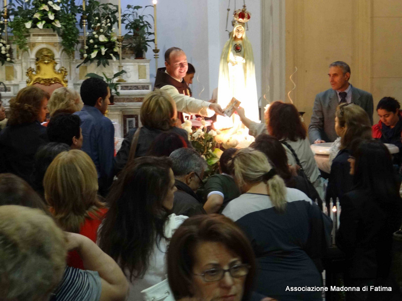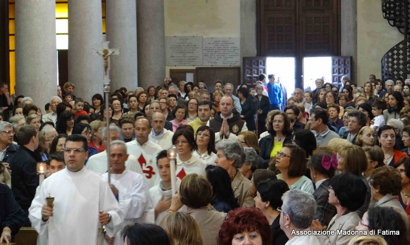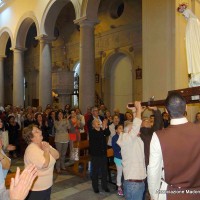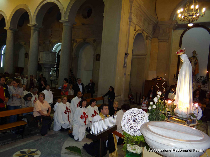 Il parroco, p. Pietro Scolaro, terziario degli Araldi ha accolto l’effige alle ore 21 e dopo la cerimonia di incoronazione e il rosario solenne, ha fatto rivivere le intense emozioni provate a Fatima in attesa del 13 maggio, anniversario dell’apparizione, con la processione in ginocchio sino ai piedi della Vergine Maria.