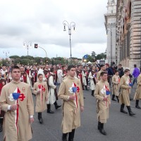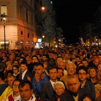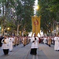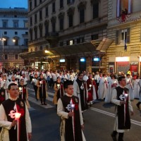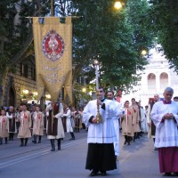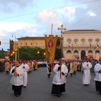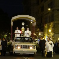 Nonostante il cielo minacciasse pioggia, egli ha percorso le strade della città eterna a piedi, per circa un miglio, a seguito di un altare mobile che è stato installato in custodia. La processione si è svolta in pieno raccoglimento , animata da canti e preghiere che giungevano lungo le vie dagli altoparlanti che erano stati precedentemente installati.