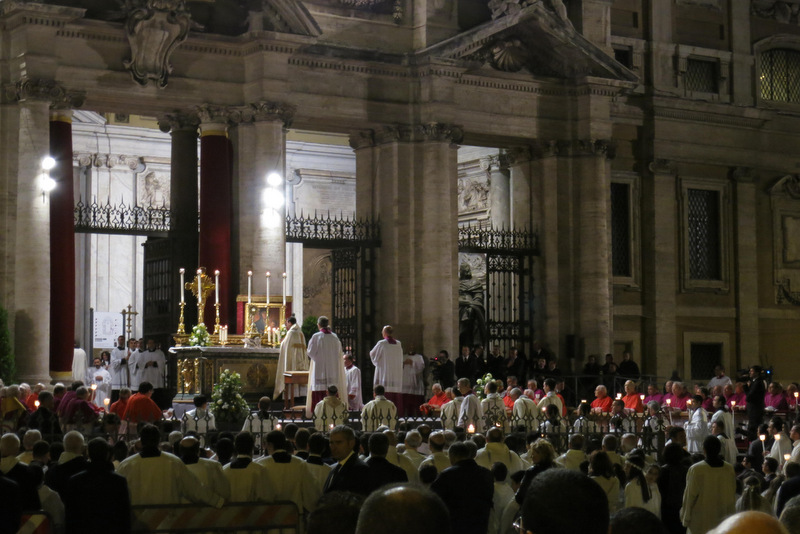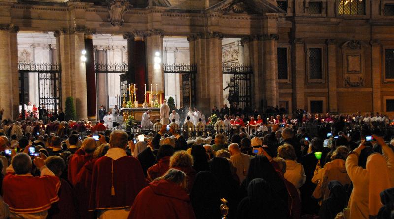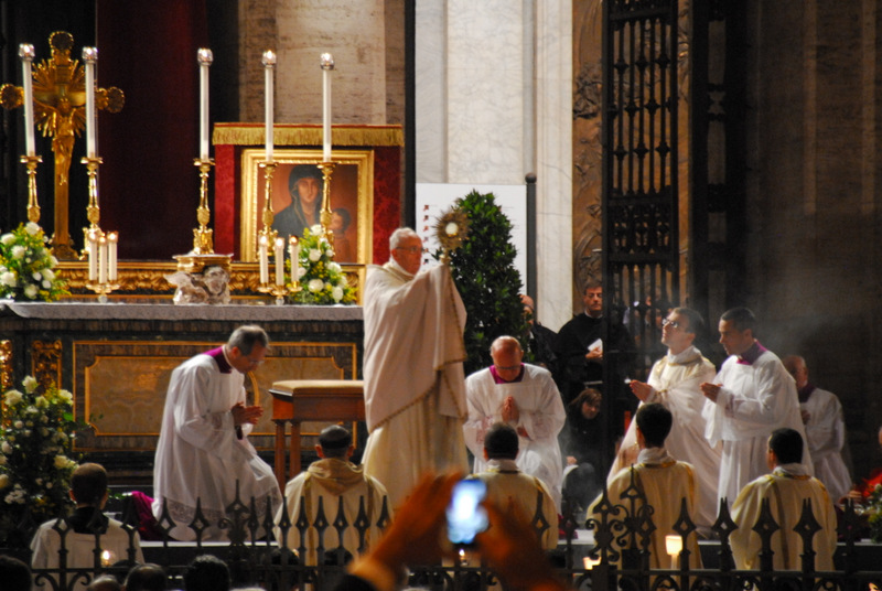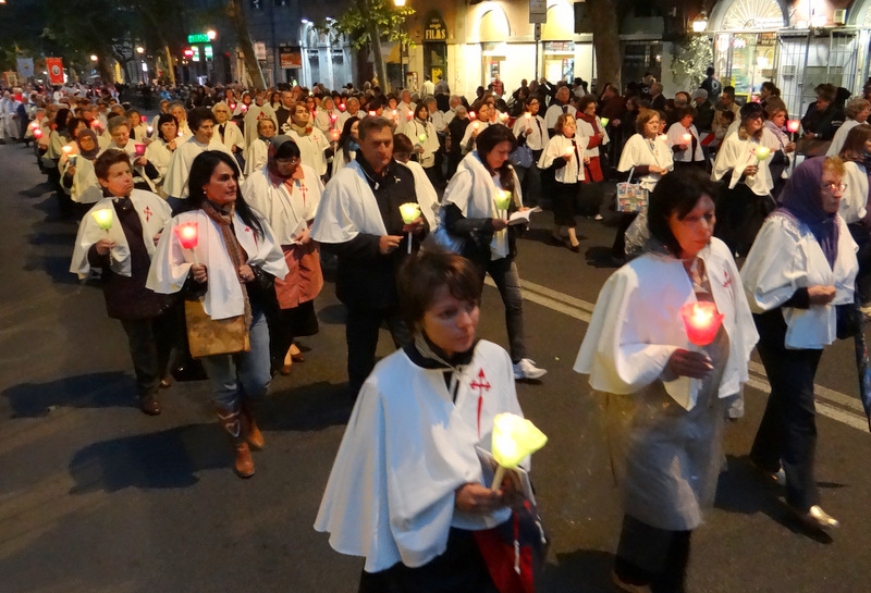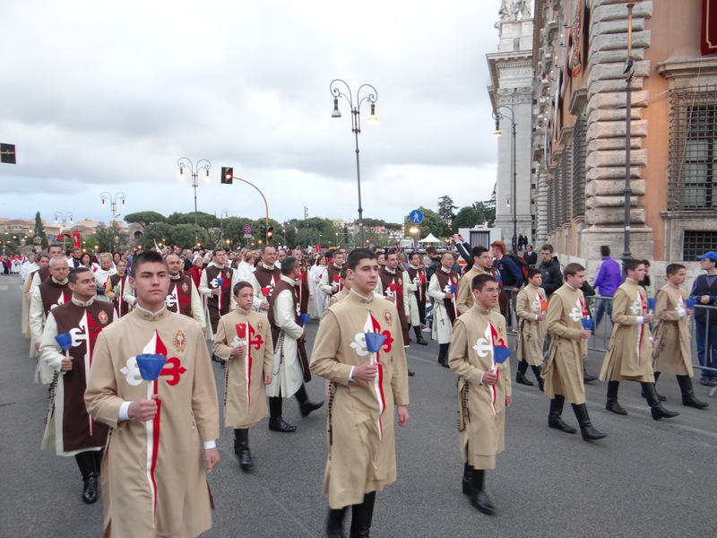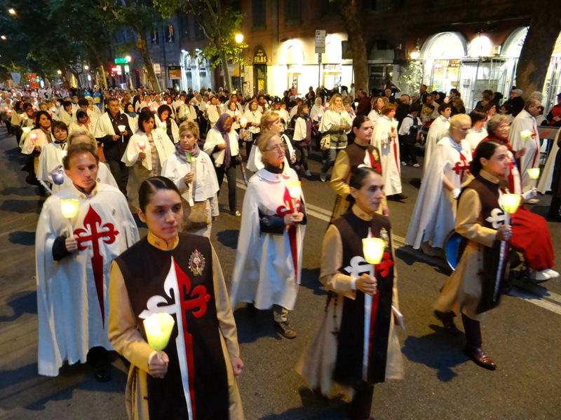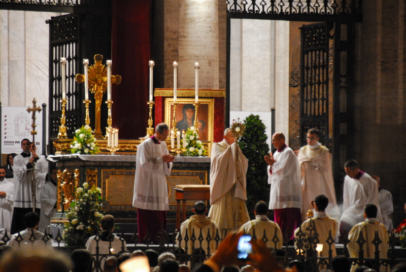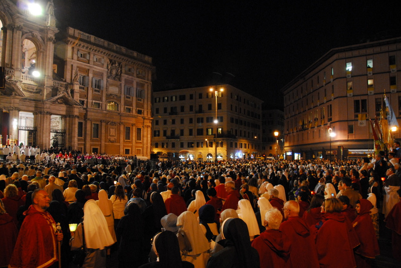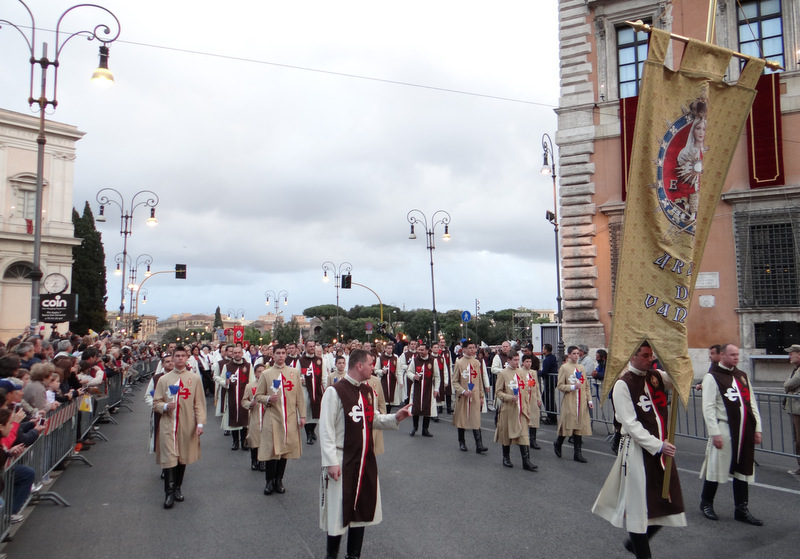 Nonostante il cielo minacciasse pioggia, egli ha percorso le strade della città eterna a piedi, per circa un miglio, a seguito di un altare mobile che è stato installato in custodia. La processione si è svolta in pieno raccoglimento , animata da canti e preghiere che giungevano lungo le vie dagli altoparlanti che erano stati precedentemente installati.