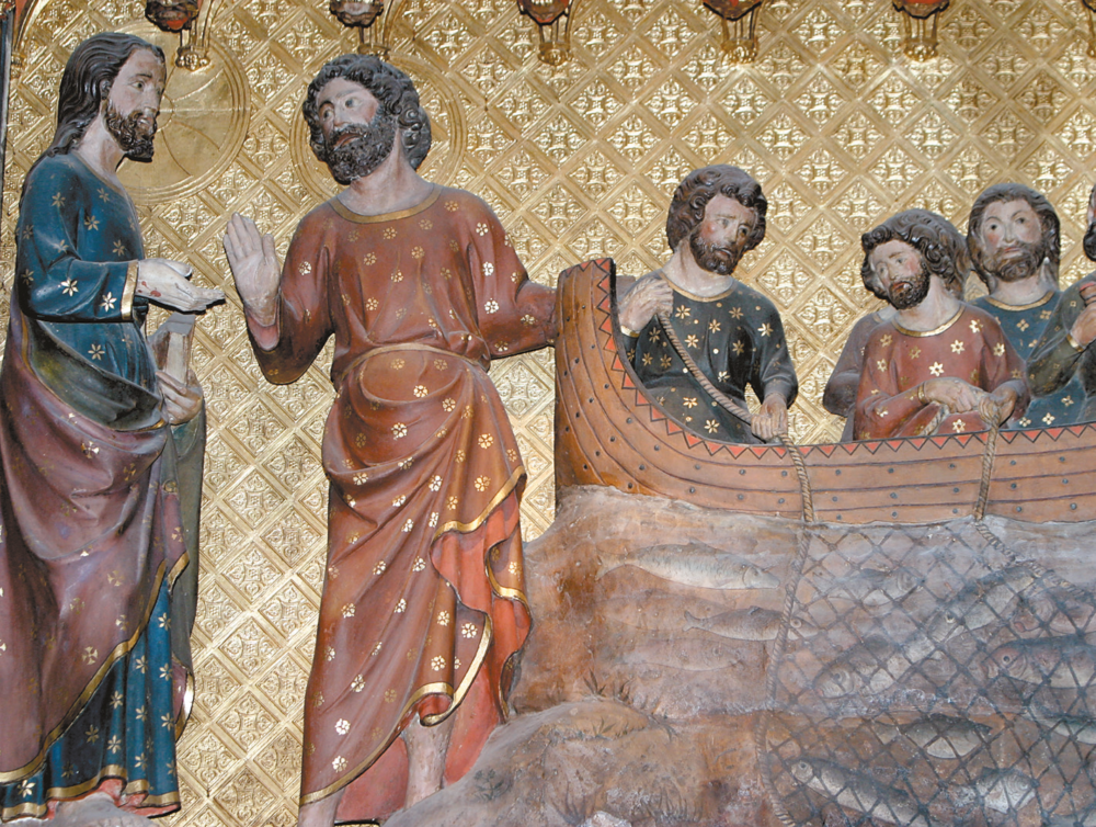 Pietro, nel suo ardente amore, è sempre pronto a rispondere, con audacia, alle sollecitazioni di Gesù. La sua disponibilità totale non si riduce solamente al fatto che lui era il padrone della barca. Egli da solo termina l’operazione iniziata dagli altri. Il primo nell’amore, il più flessibile nell’obbedienza. Qui sta la vera radice da cui traggono sostanziosa linfa tutte le virtù: l’amore.