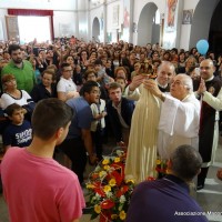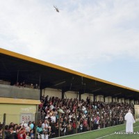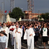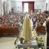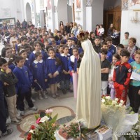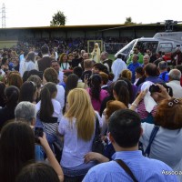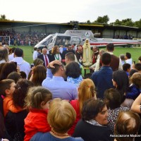 La Madonna, portata dall’elicottero della protezione civile è giunta al campo sportivo gremito di fedeli. Uno scenario  meraviglioso di viva fede Mariana . Un numeroso gruppo di fedeli ha accolto dando un caloroso  benvenuto   la Madonnina Pellegrina di Fatima, accompagnata dai quattro Araldi del Vangelo, dal parroco D. Carmelo Ascone, dal vice parroco D. Rosario Attisano, dal diacono Mimmo Sarreti, dalle Suore e dal collaboratore parrocchiale Daniele Coppola. Presenti anche  le autorità civili nella persona del Sindaco e dell’Assessore Michele Fabrizio. La folla immensa presente nel campo sportivo , con in mano fazzoletti  bianchi ha elevato   al cielo melodiosi canti Mariani accogliendo festante  la Mamma nostra discesa dal Cielo.