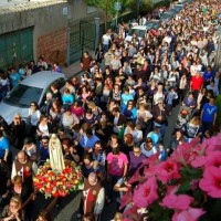 Una moltitudine di fedeli entusiasti e  devoti  accoglie e saluta la Madonna Pellegrina di Fatima nella Parrocchia Maria SS. Addolorata a Rosarno (RC).