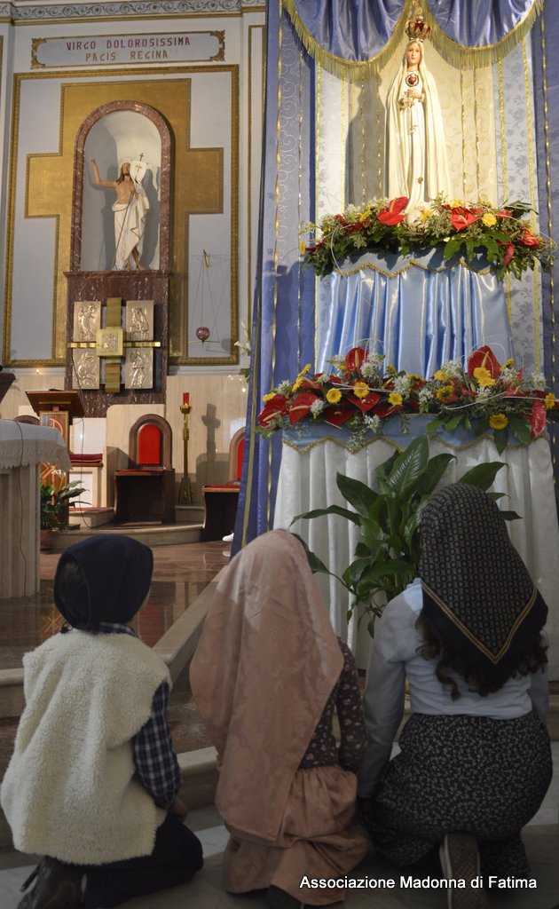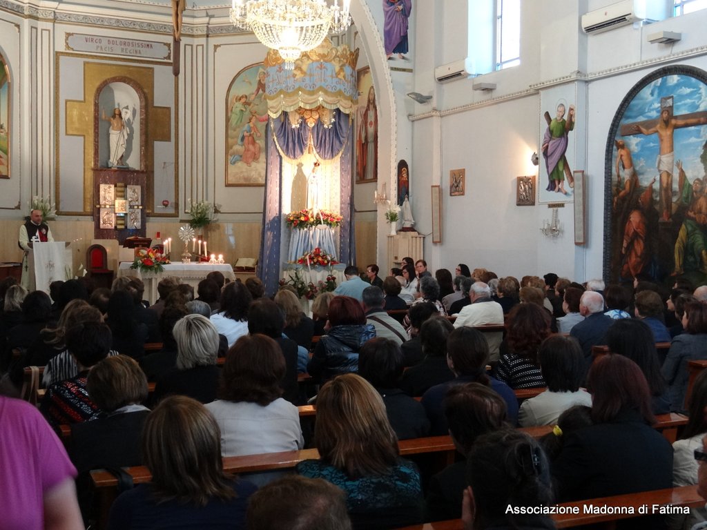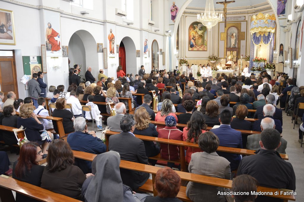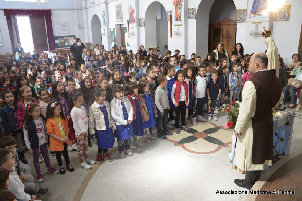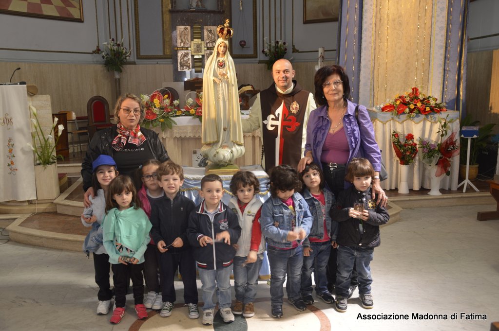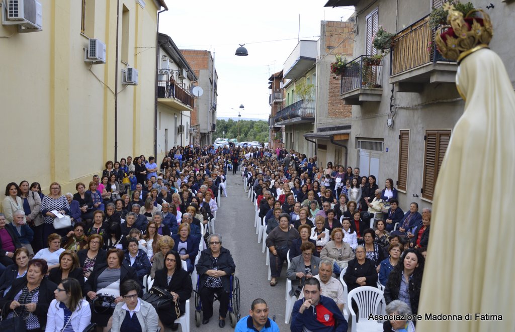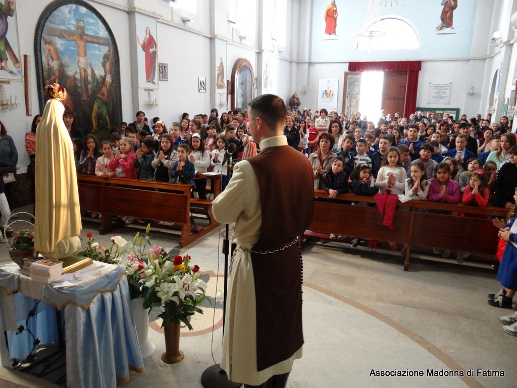 La Madonna, portata dall’elicottero della protezione civile è giunta al campo sportivo gremito di fedeli. Uno scenario  meraviglioso di viva fede Mariana . Un numeroso gruppo di fedeli ha accolto dando un caloroso  benvenuto   la Madonnina Pellegrina di Fatima, accompagnata dai quattro Araldi del Vangelo, dal parroco D. Carmelo Ascone, dal vice parroco D. Rosario Attisano, dal diacono Mimmo Sarreti, dalle Suore e dal collaboratore parrocchiale Daniele Coppola. Presenti anche  le autorità civili nella persona del Sindaco e dell’Assessore Michele Fabrizio. La folla immensa presente nel campo sportivo , con in mano fazzoletti  bianchi ha elevato   al cielo melodiosi canti Mariani accogliendo festante  la Mamma nostra discesa dal Cielo.