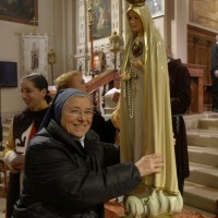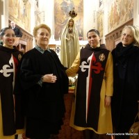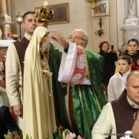 Ma l’ambiente dentro il Santuario ” Santa Maria Assunta” era tutto diverso! I nostri cari collaboratori,… no i nostri cari fratelli, che si sono fatti presenti hanno gremito la chiesa e insieme a Mons. Angelo Centenaro e D. Carlo hanno donato a noi, Araldi del Vangelo, un regalo immenso. Questo è ciò che la loro presenza ha suscitato in quella serata cominciata con l’ingresso solenne della Vergine di Fatima, proseguita con l’Adorazione Eucaristica e il Rosario meditato; dopo il punto più importante la Santa Messa che si è conclusa con la incoronazione della Vergine di Fatima. Con ciò abbiamo potuto esprimere, a coloro che collaborano con noi tanto materialmente quanto spiritualmente, la nostra gratitudine; e a voi cari lettori , che non avete potuto presenziare, vogliamo trasmettere un pò di questo ambiente attraverso le foto. E una volta in più grazie a tutti coloro che si sentono uniti a questa grande famiglia degli Araldi del Vangelo e della Associazione Madonna di Fatima.