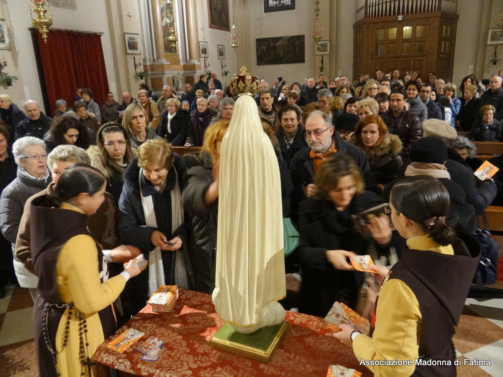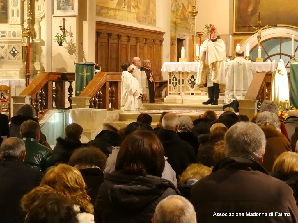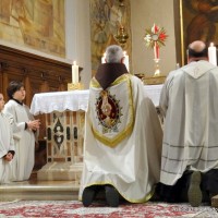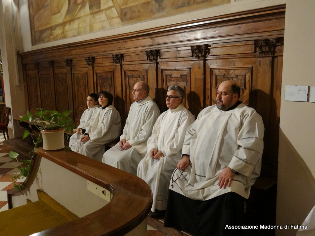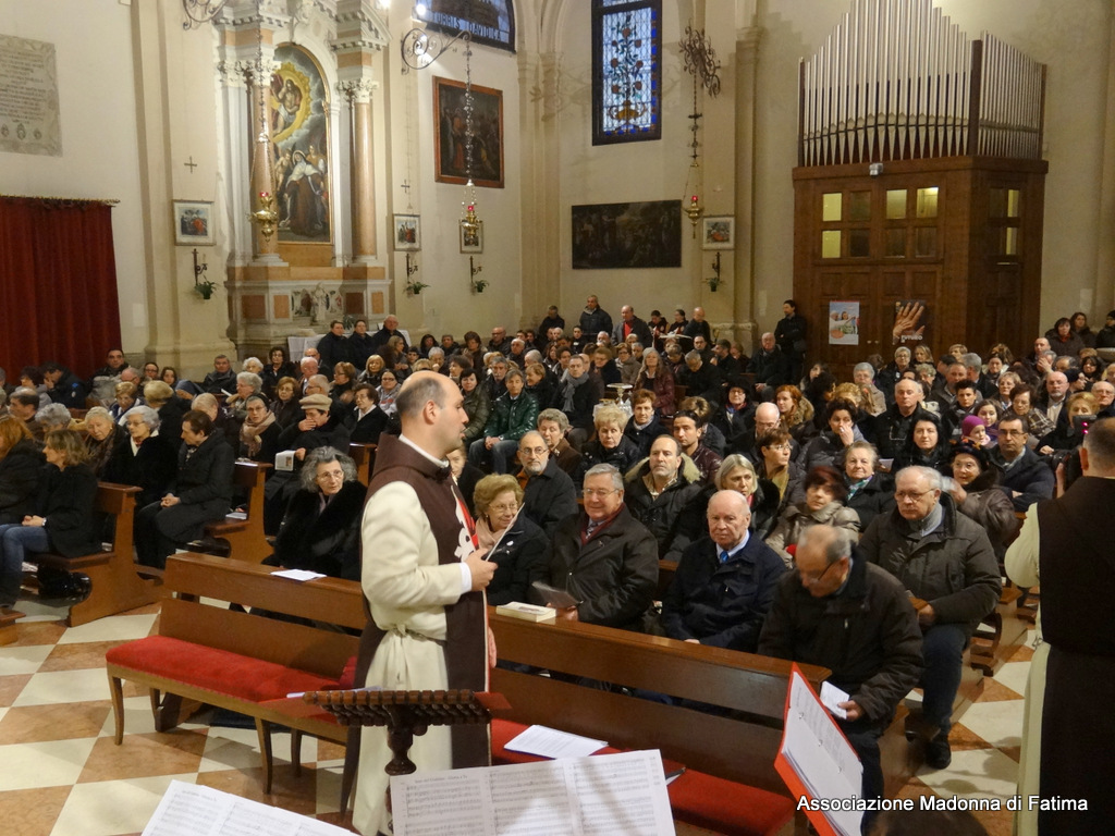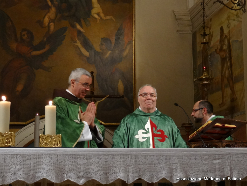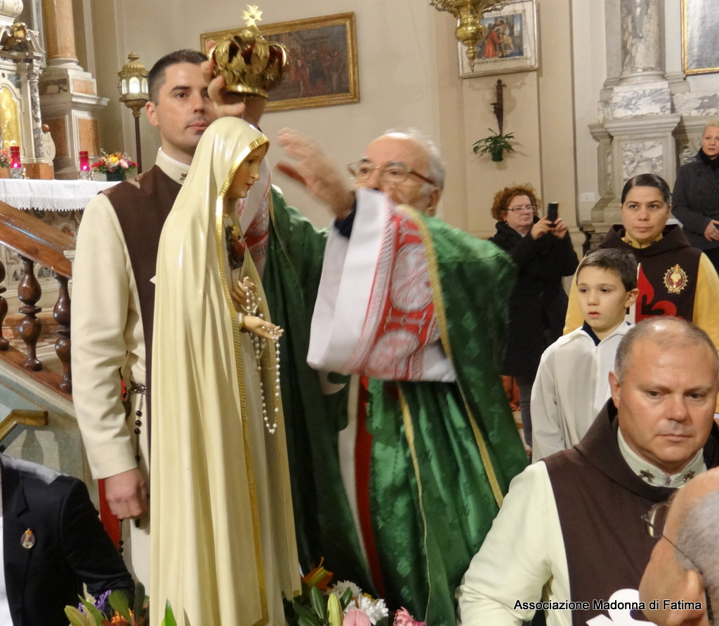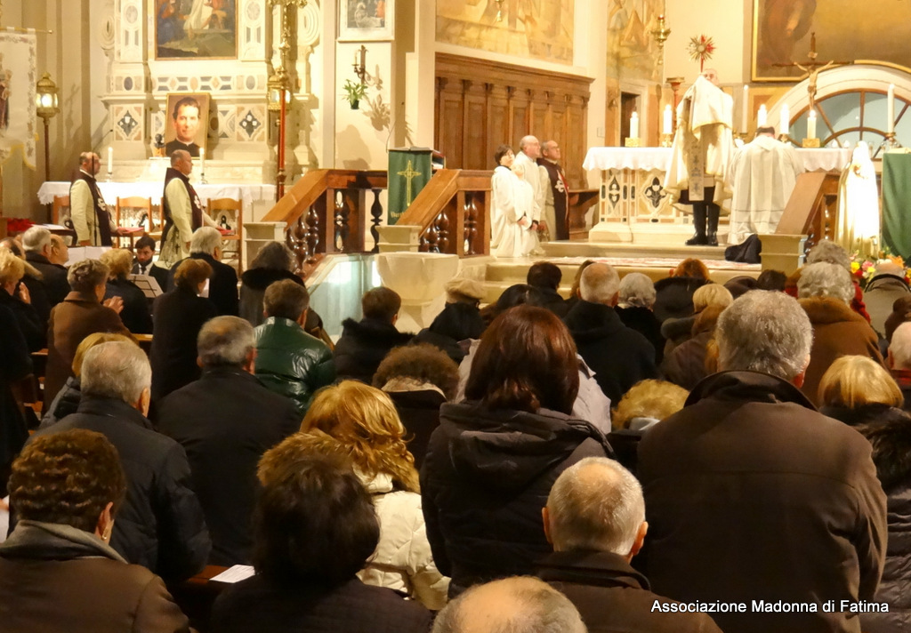 Ma l’ambiente dentro il Santuario ” Santa Maria Assunta” era tutto diverso! I nostri cari collaboratori,… no i nostri cari fratelli, che si sono fatti presenti hanno gremito la chiesa e insieme a Mons. Angelo Centenaro e D. Carlo hanno donato a noi, Araldi del Vangelo, un regalo immenso. Questo è ciò che la loro presenza ha suscitato in quella serata cominciata con l’ingresso solenne della Vergine di Fatima, proseguita con l’Adorazione Eucaristica e il Rosario meditato; dopo il punto più importante la Santa Messa che si è conclusa con la incoronazione della Vergine di Fatima. Con ciò abbiamo potuto esprimere, a coloro che collaborano con noi tanto materialmente quanto spiritualmente, la nostra gratitudine; e a voi cari lettori , che non avete potuto presenziare, vogliamo trasmettere un pò di questo ambiente attraverso le foto. E una volta in più grazie a tutti coloro che si sentono uniti a questa grande famiglia degli Araldi del Vangelo e della Associazione Madonna di Fatima.