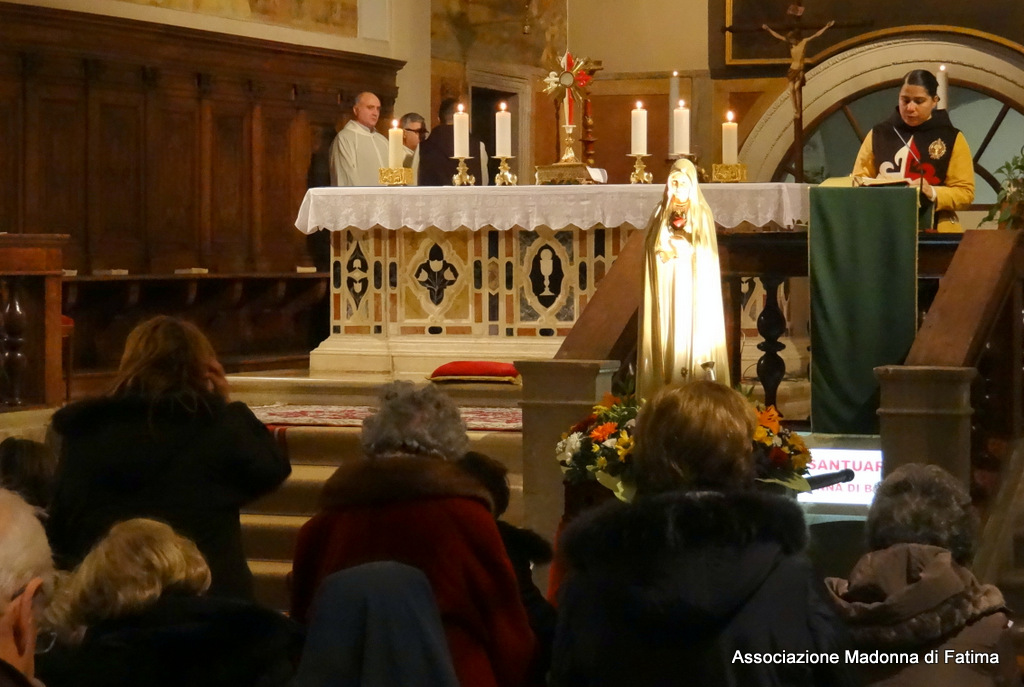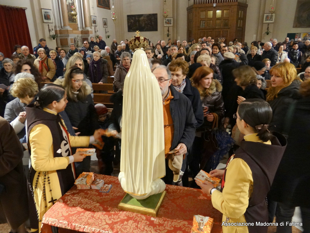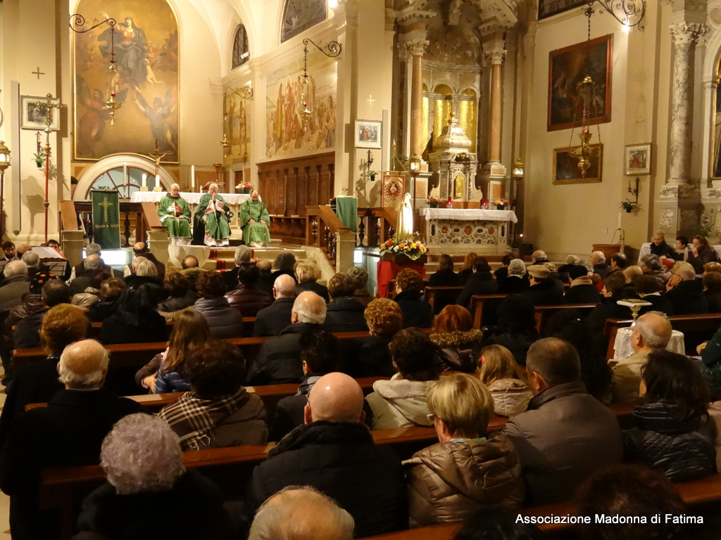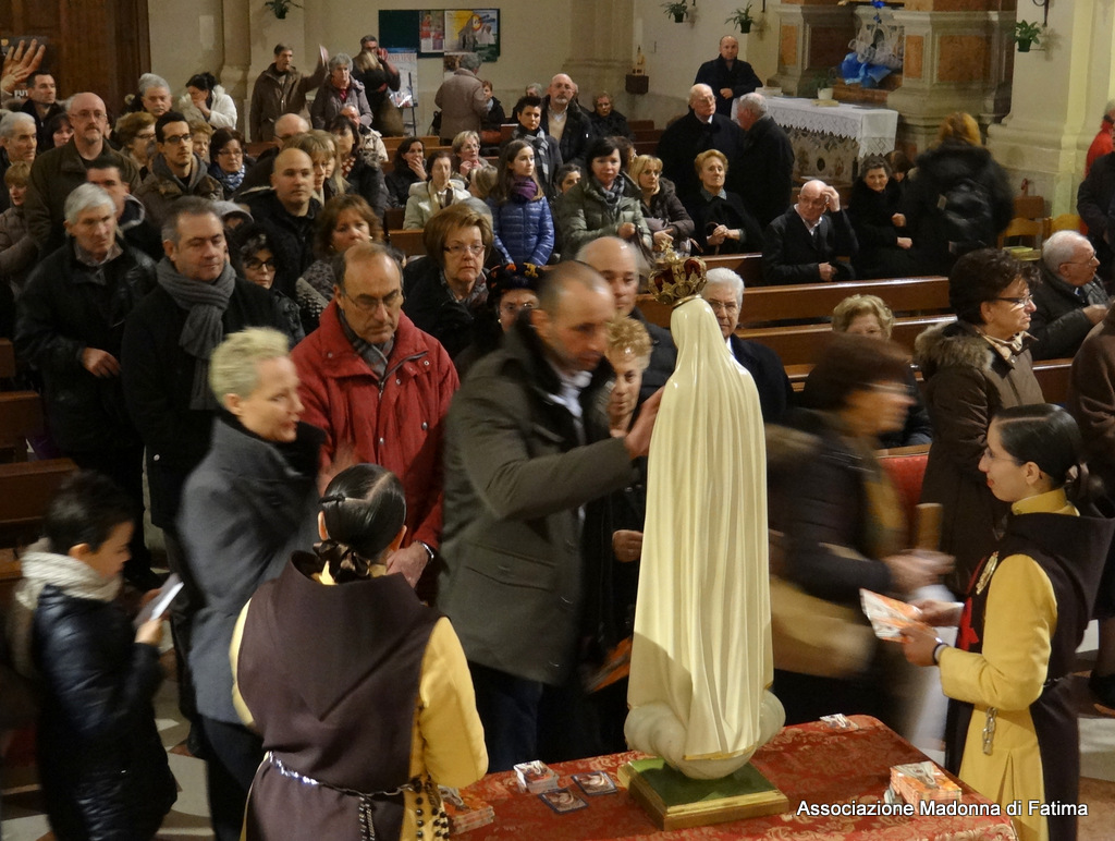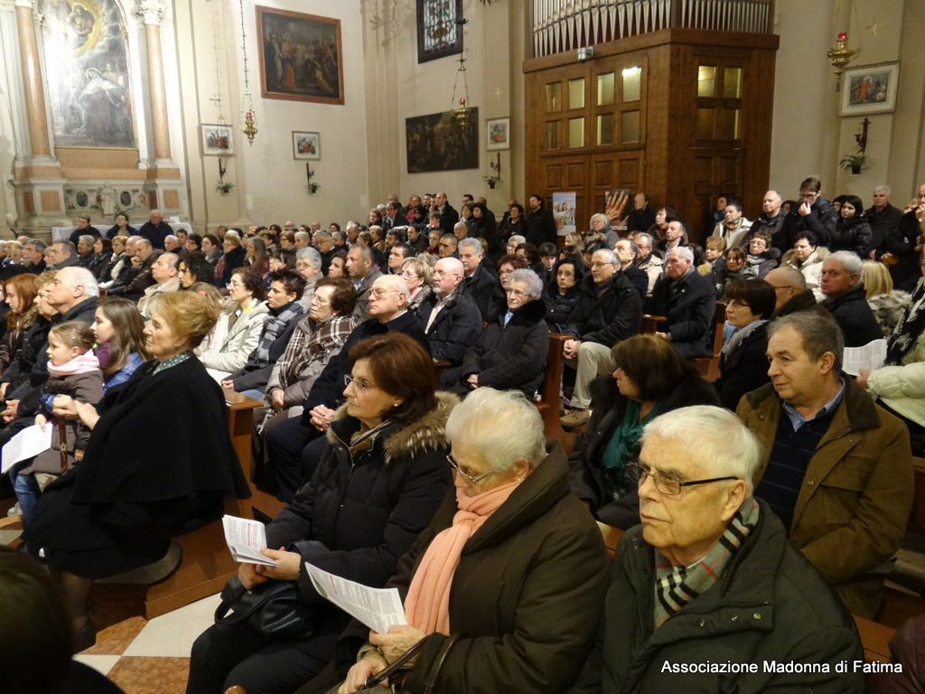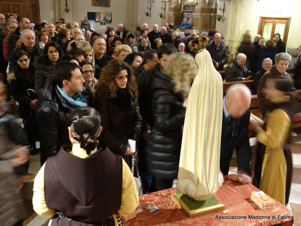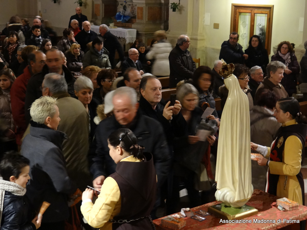 Ma l’ambiente dentro il Santuario ” Santa Maria Assunta” era tutto diverso! I nostri cari collaboratori,… no i nostri cari fratelli, che si sono fatti presenti hanno gremito la chiesa e insieme a Mons. Angelo Centenaro e D. Carlo hanno donato a noi, Araldi del Vangelo, un regalo immenso. Questo è ciò che la loro presenza ha suscitato in quella serata cominciata con l’ingresso solenne della Vergine di Fatima, proseguita con l’Adorazione Eucaristica e il Rosario meditato; dopo il punto più importante la Santa Messa che si è conclusa con la incoronazione della Vergine di Fatima. Con ciò abbiamo potuto esprimere, a coloro che collaborano con noi tanto materialmente quanto spiritualmente, la nostra gratitudine; e a voi cari lettori , che non avete potuto presenziare, vogliamo trasmettere un pò di questo ambiente attraverso le foto. E una volta in più grazie a tutti coloro che si sentono uniti a questa grande famiglia degli Araldi del Vangelo e della Associazione Madonna di Fatima.