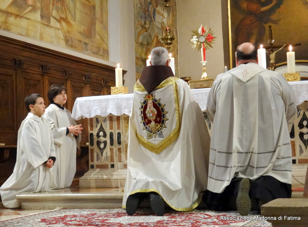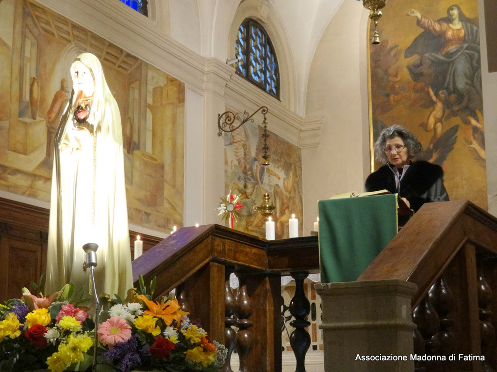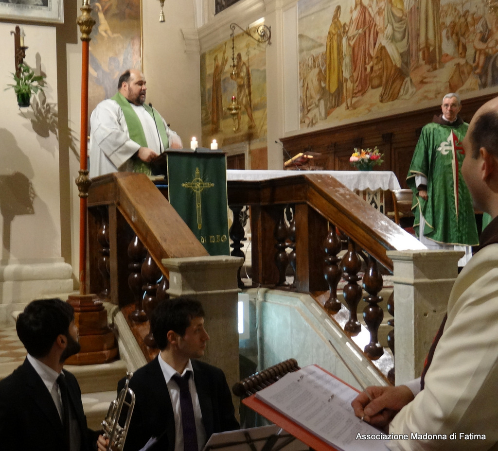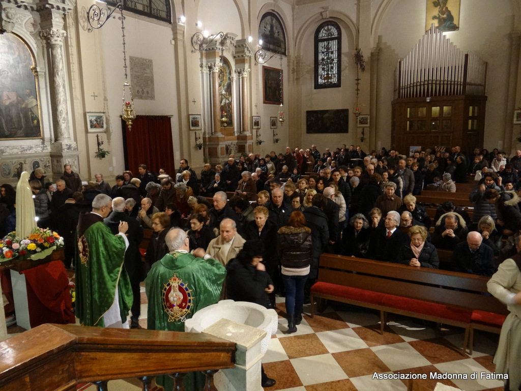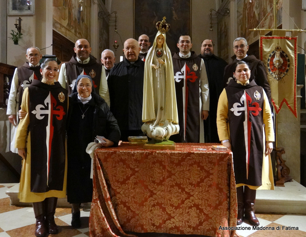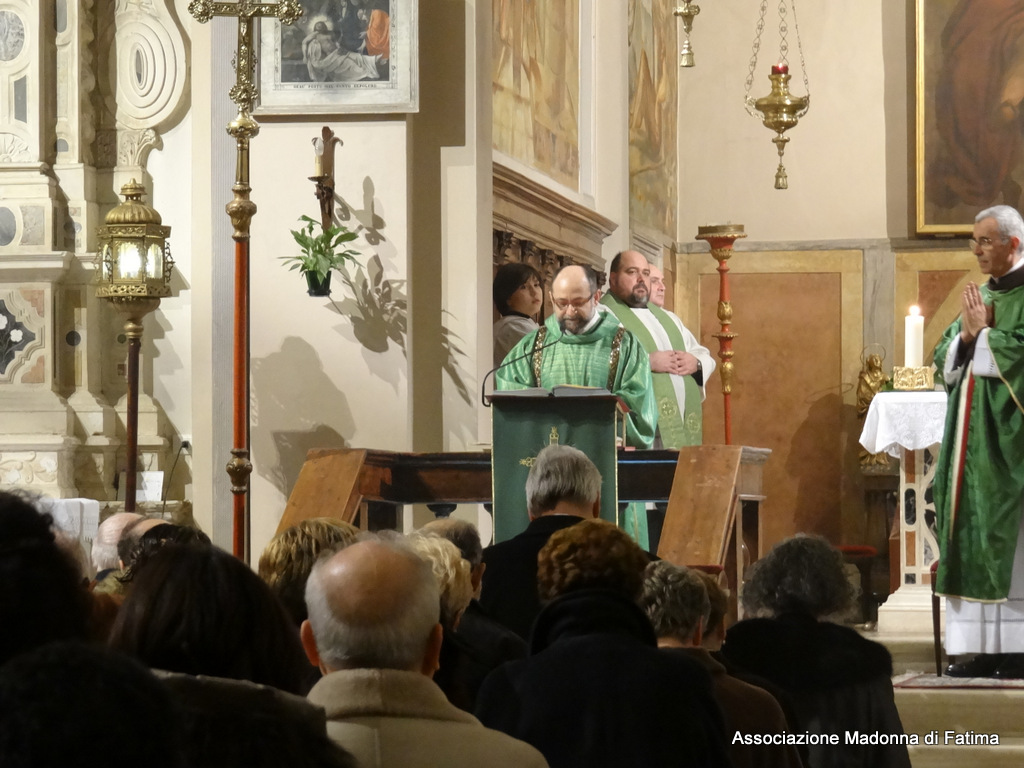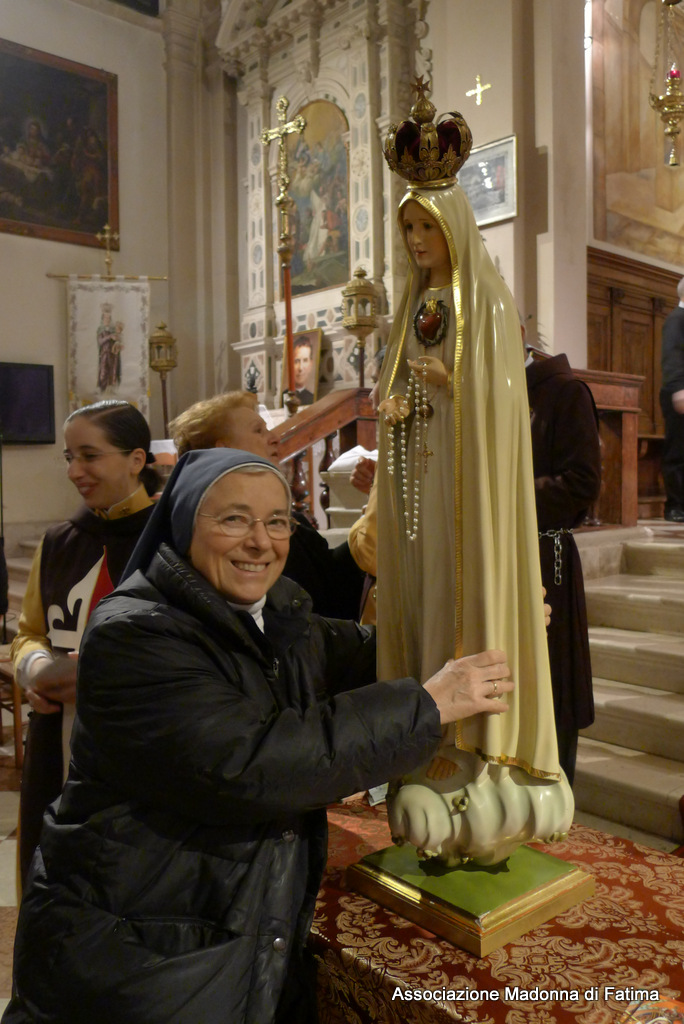 Ma l’ambiente dentro il Santuario ” Santa Maria Assunta” era tutto diverso! I nostri cari collaboratori,… no i nostri cari fratelli, che si sono fatti presenti hanno gremito la chiesa e insieme a Mons. Angelo Centenaro e D. Carlo hanno donato a noi, Araldi del Vangelo, un regalo immenso. Questo è ciò che la loro presenza ha suscitato in quella serata cominciata con l’ingresso solenne della Vergine di Fatima, proseguita con l’Adorazione Eucaristica e il Rosario meditato; dopo il punto più importante la Santa Messa che si è conclusa con la incoronazione della Vergine di Fatima. Con ciò abbiamo potuto esprimere, a coloro che collaborano con noi tanto materialmente quanto spiritualmente, la nostra gratitudine; e a voi cari lettori , che non avete potuto presenziare, vogliamo trasmettere un pò di questo ambiente attraverso le foto. E una volta in più grazie a tutti coloro che si sentono uniti a questa grande famiglia degli Araldi del Vangelo e della Associazione Madonna di Fatima.