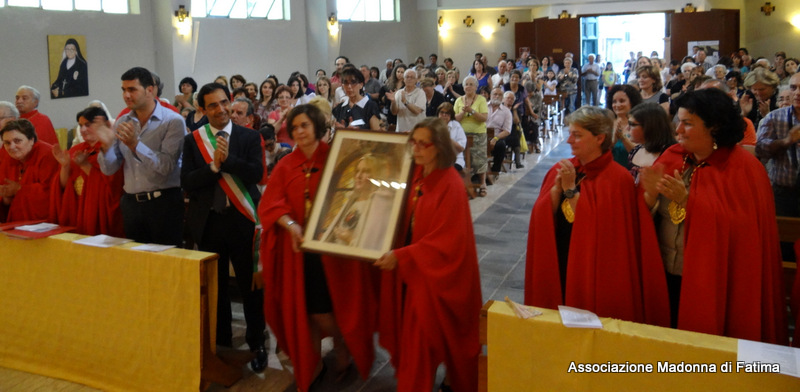 Nella messa di saluto il parroco ha consacrato tutta la comunità al Cuore Immacolato di Maria e ha lasciato nell’omelia anche la sua testimonianza di come la presenza dell’effige ha portato in questo paese momenti veramente particolari.