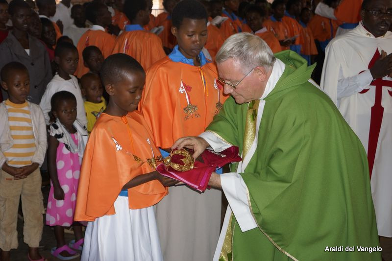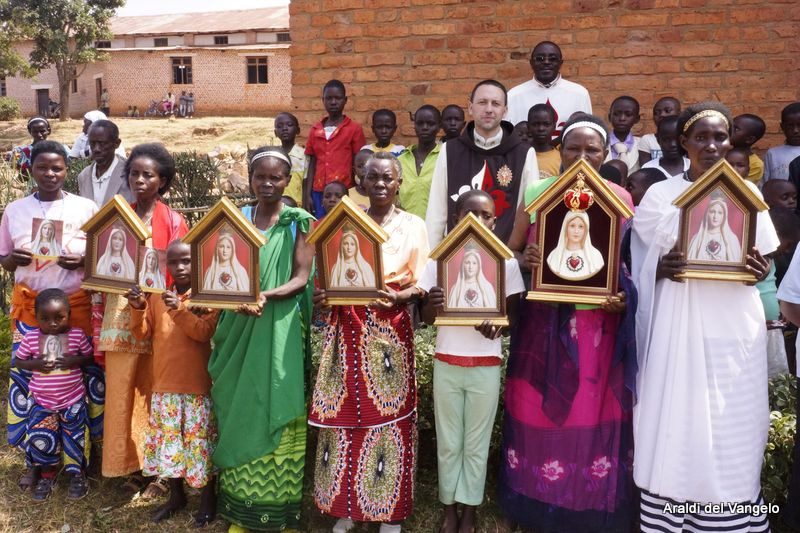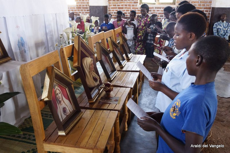 Nella festa degli Apostoli San Pietro e San Paolo, 29 giugno, si sono compiuti sette anni di Apostolato dell’Icona in Rwanda. La data è stata commemorata con una solenne Eucaristia nella Chiesa matrice di Rango. Vari parrocchiani non hanno esitato a percorrere a piedi la distanza di 20 chilometri per partecipare alla festa. L’animazione dell’atto liturgico è stata a carico di un gruppo corale di 60 giovani che ricevono mensilmente a casa loro l’Icona del Cuore Immacolato di Maria, alcuni dei quali devono percorrere un lungo cammino per poter partecipare agli addestramenti di routine.