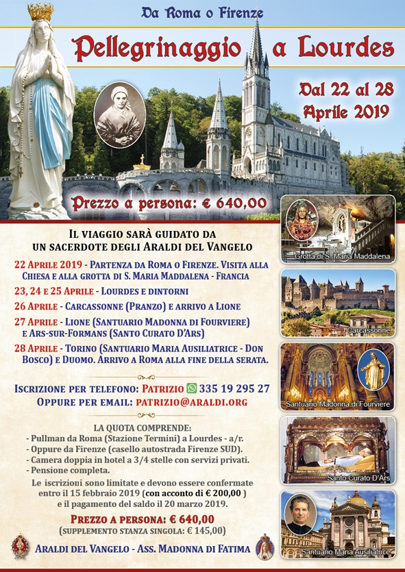 Con partenze da Roma o Firenze, il pellegrinaggio sarà guidato da un sacerdote degli Araldi del Vangelo.