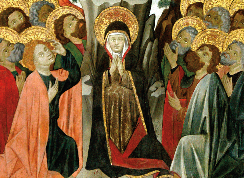 Una parola su Maria. Certamente Lei intercedette presso Dio per ispirarli a permanere in orazione nel Cenacolo. L’altezza della sua umiltà era la stessa di quella della sua fede, verginità e grandezza. Lei pregava ai piedi della Croce, nel Calvario; ora La incontriamo in profondo raccoglimento. Dopo la discesa dello Spirito Santo, la Scrittura non La menzionerà più e, probabilmente, il resto dei suoi anni, Ella li ha vissuti in intensa preghiera, costituendoSi nell’insuperabile modello della donna cristiana.